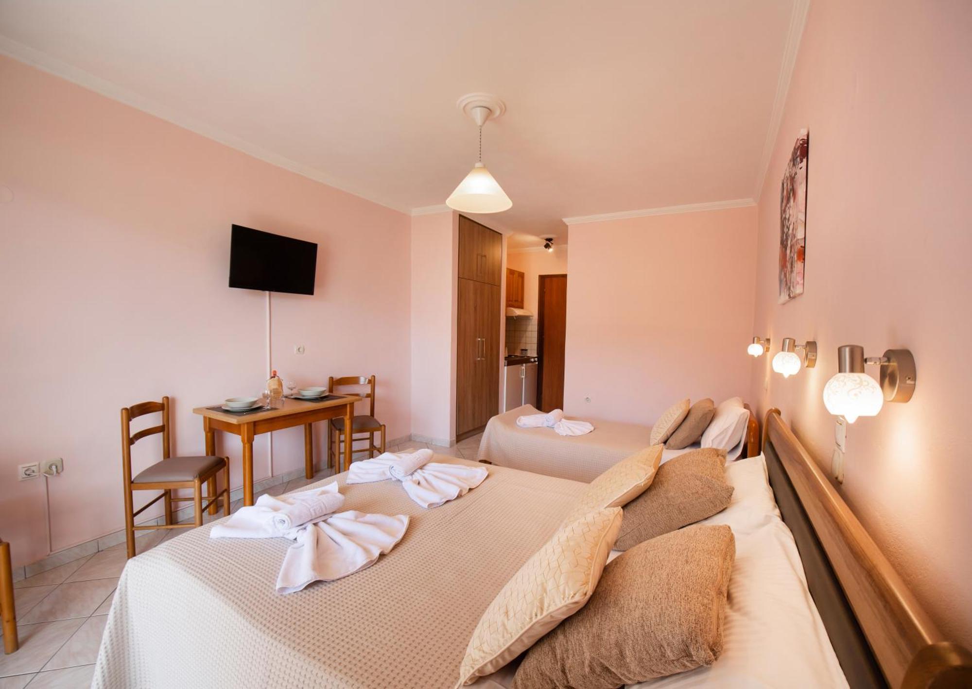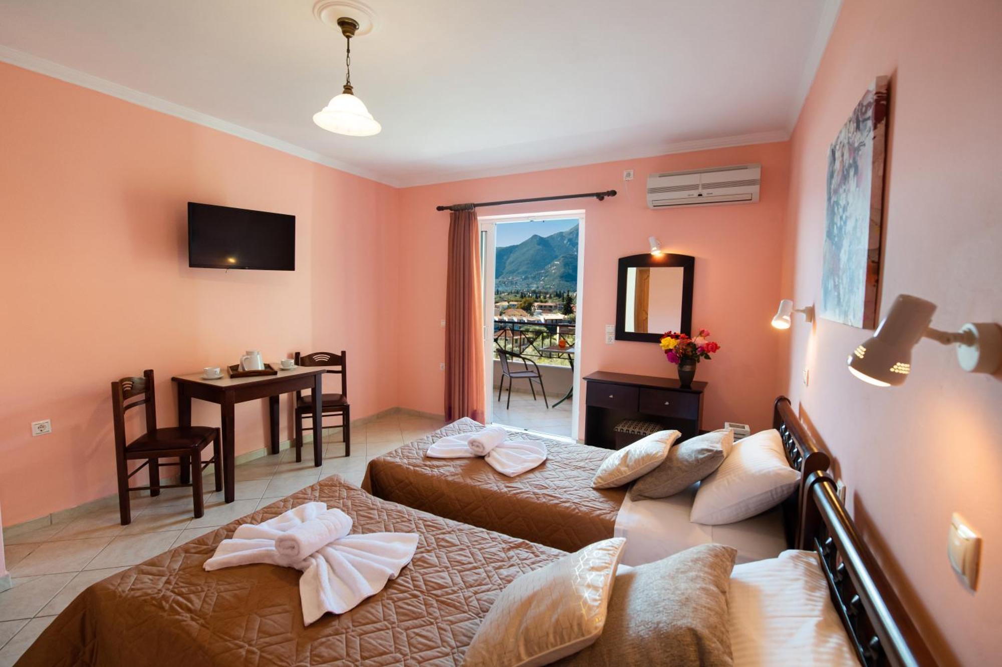 Located in Nydri and only 1.3 km from Pasas Beach, Sunrise Studios provides accommodation with sea views, free WiFi and free private parking. The property features mountain and pool views, and is 1.5 km from Dimosari Waterfalls. The infinity pool features a pool bar and fence. The aparthotel will provide guests with air-conditioned units offering a wardrobe, a kettle, a toaster, a fridge, a safety deposit box, a flat-screen TV, a terrace and a private bathroom with a shower. All units include private entrance. At the aparthotel, every unit includes bed linen and towels. Buffet and continental breakfast options with juice and cheese are available. You can prepare your own food in the kitchen before eating on the private balcony and the aparthotel also offers a coffee shop. Guests can also relax in the garden or in the shared lounge area. Agiou Georgiou Square is 15 km from the aparthotel, while Church of Agia Kiriaki is 15 km away. Aktion Airport is 35 km from the property.