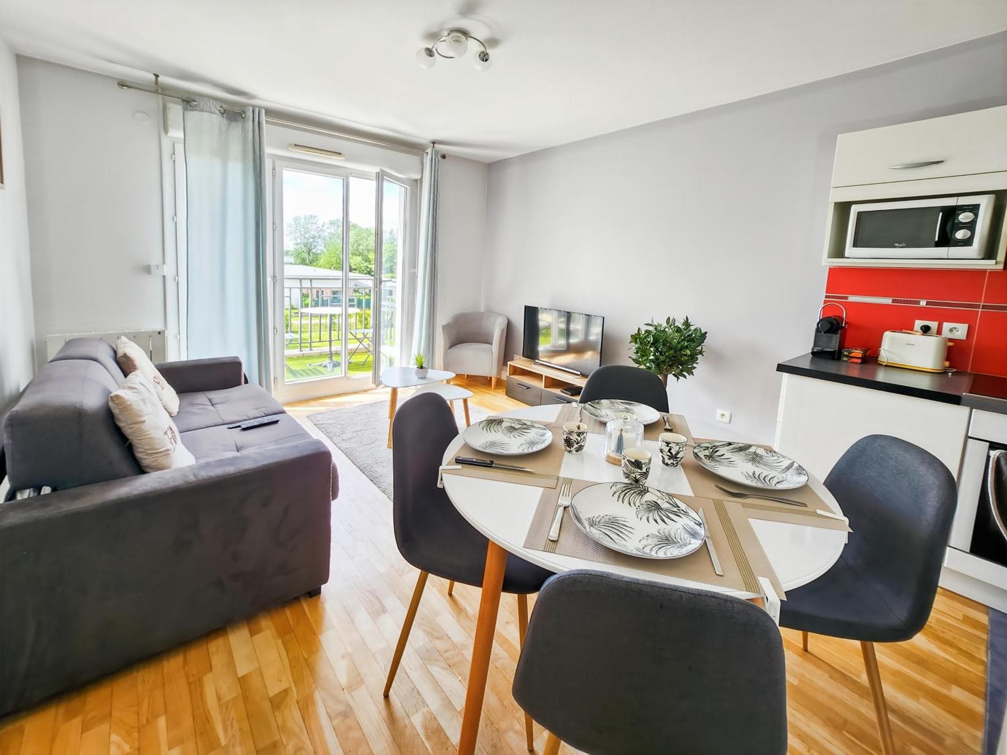 Set 6.4 km from Disneyland Paris, 37 km from Paris-Gare-de-Lyon and 38 km from Opéra Bastille, Appartement, Balcon, Parking, 5' Disneyland offers accommodation located in Montévrain. It is situated 2.6 km from Val d'Europe RER Station and features a lift. There is a sun terrace and guests can make use of free WiFi and free private parking. The apartment with a balcony and garden views has 1 bedroom, a living room, a flat-screen TV, an equipped kitchen with a dishwasher and a microwave, and 1 bathroom with an a bath or shower. Towels and bed linen are available in the apartment. The property has an outdoor dining area. Notre Dame Cathedral is 39 km from the apartment, while Sainte-Chapelle is 40 km from the property. Paris - Charles de Gaulle Airport is 24 km away.